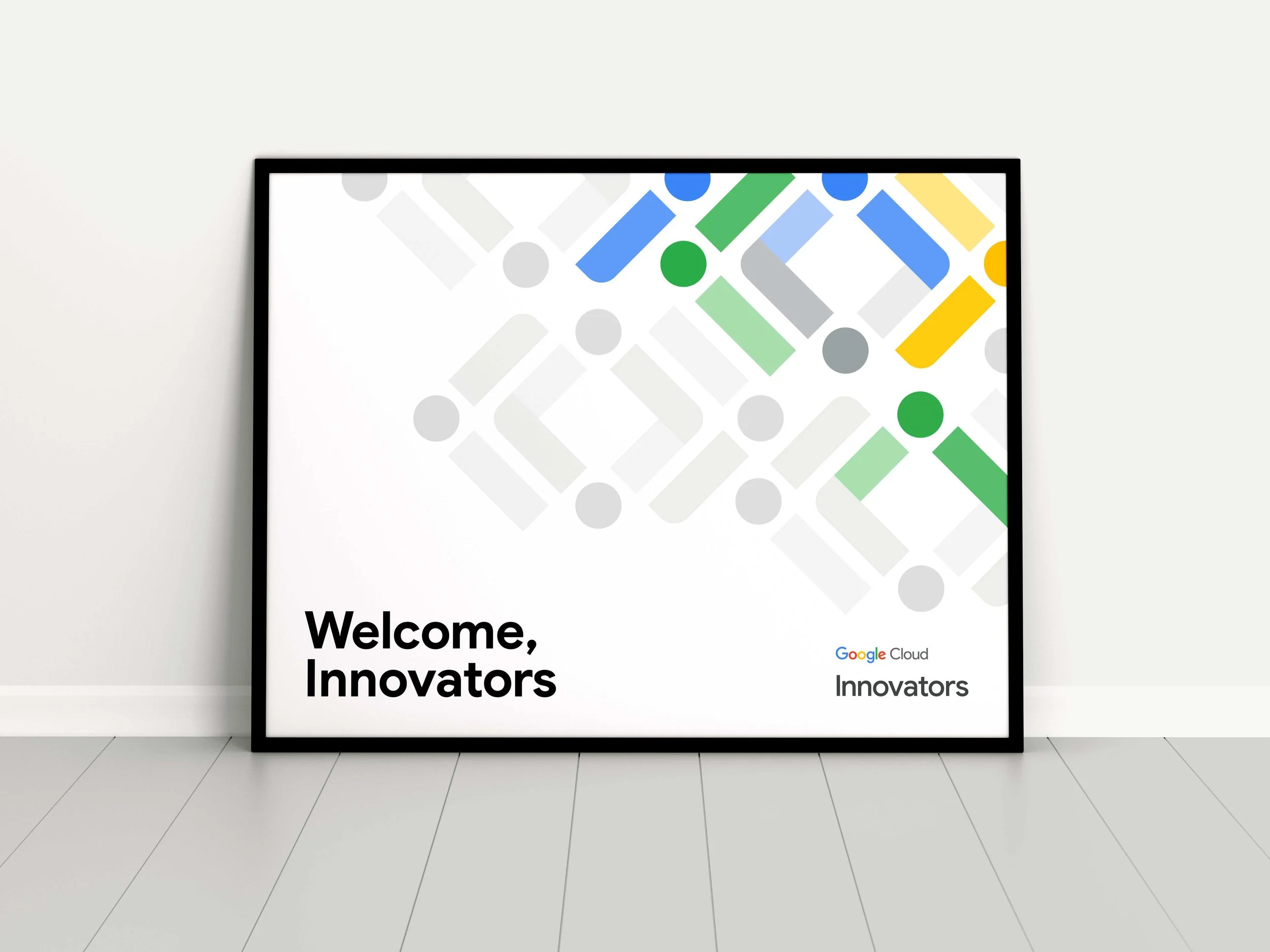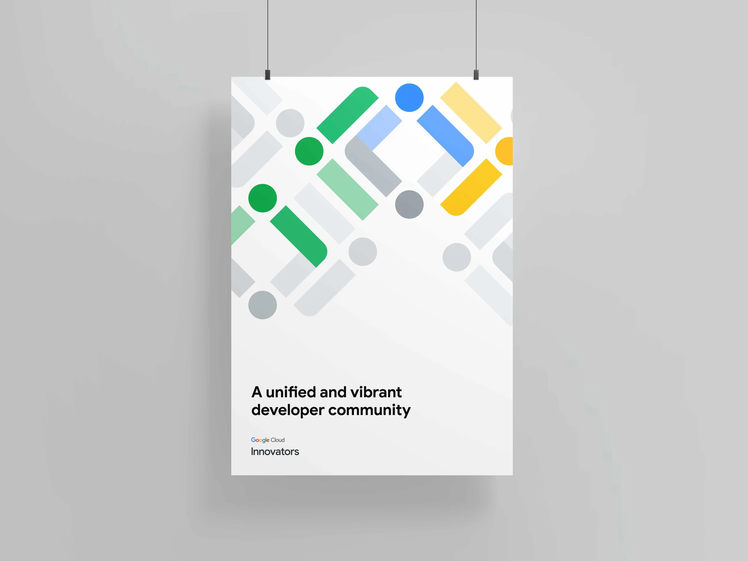 The visual brand rolled out at the launch of the Google Cloud Innovators program at Google Next 2021. We debuted a digital launch kit, marketing assets, badges, Google Slides templates, and on clothing items for community members.