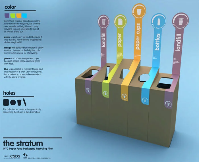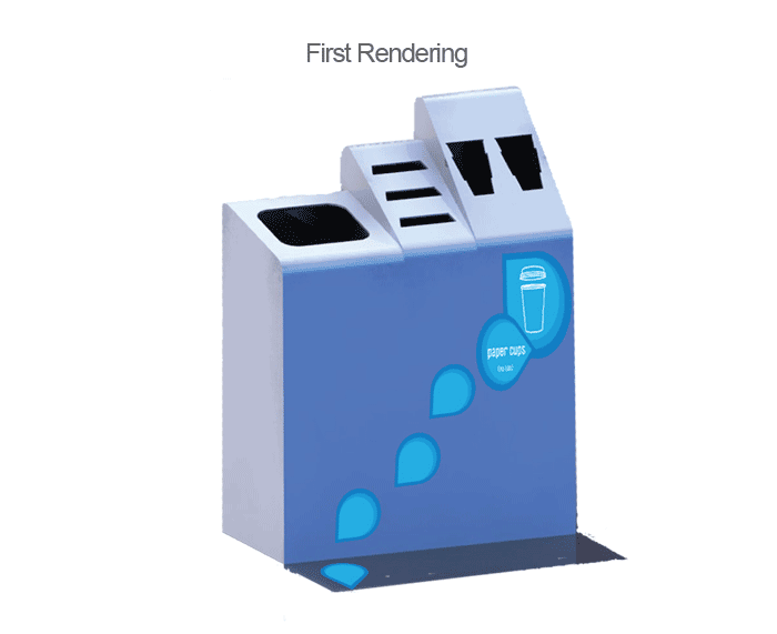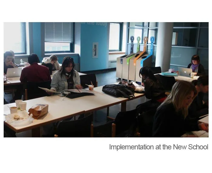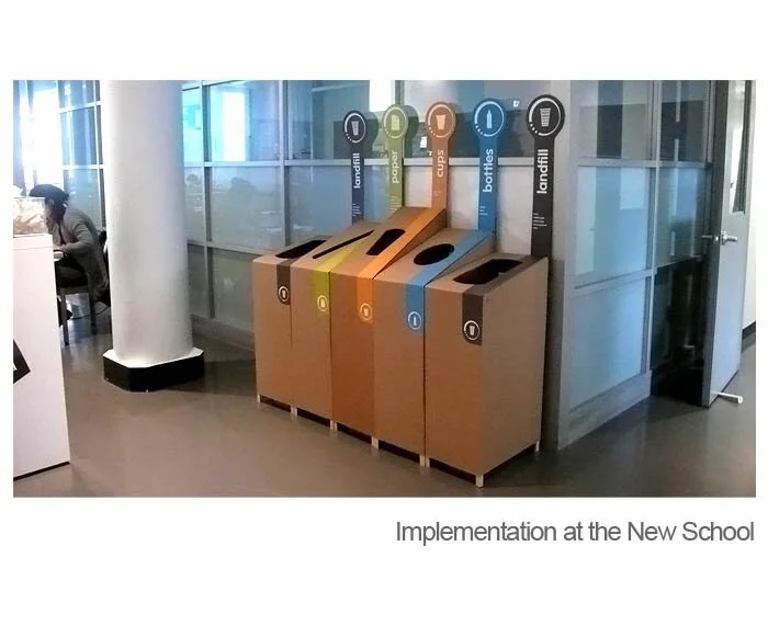Working through the Center for Sustainable Design Studies, I led a multidisciplinary team of industrial designers, graphic designers, and environmental management students. We developed and prototyped a pop-up, flat-packable bin cover made from recyclable cardboard—designed to re-enter the same waste stream as the cups themselves. The intervention was low-cost, brand-aligned, and easy to deploy. We tested the system at The New School Café and shared findings with the broader industry at a national recycling conference.